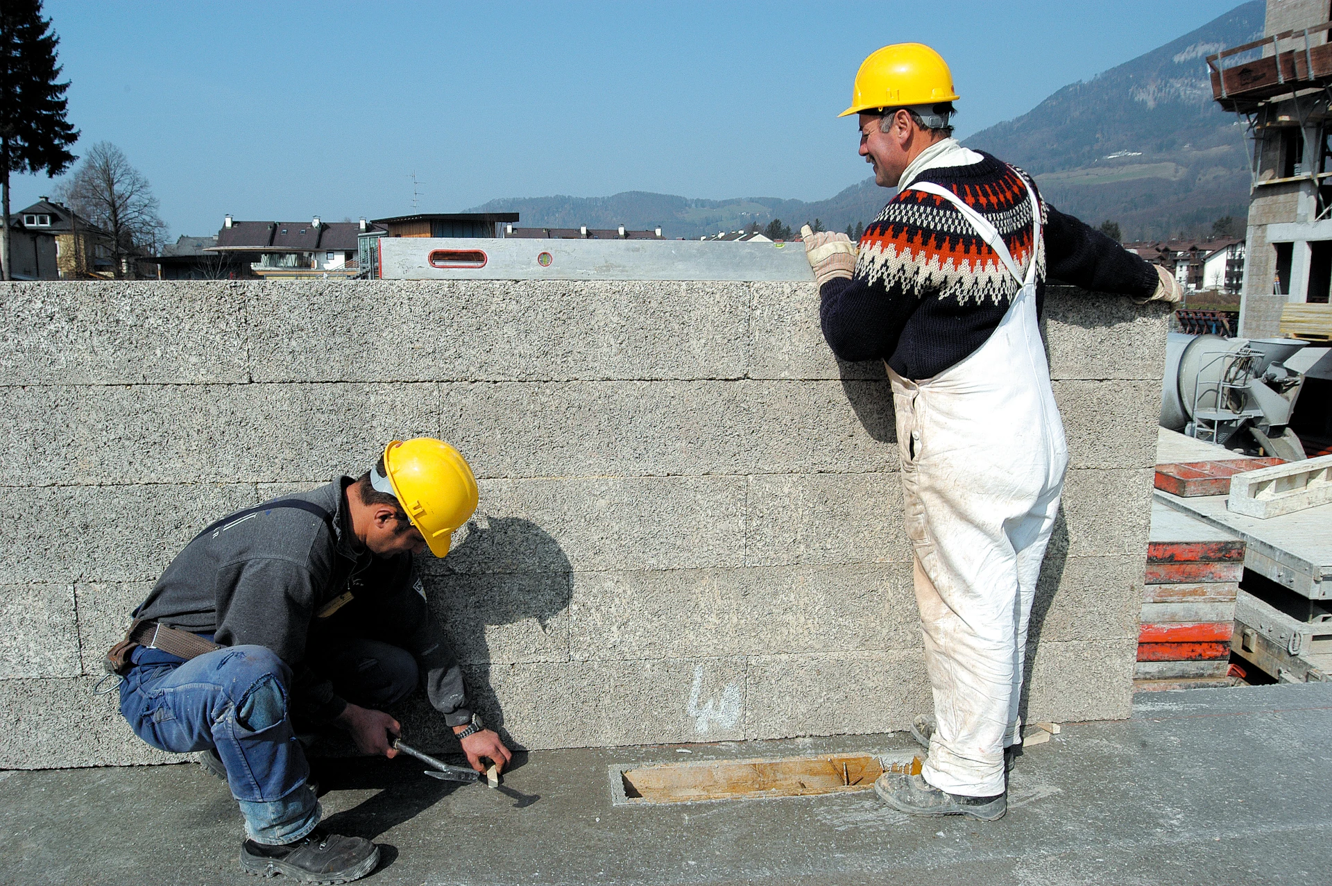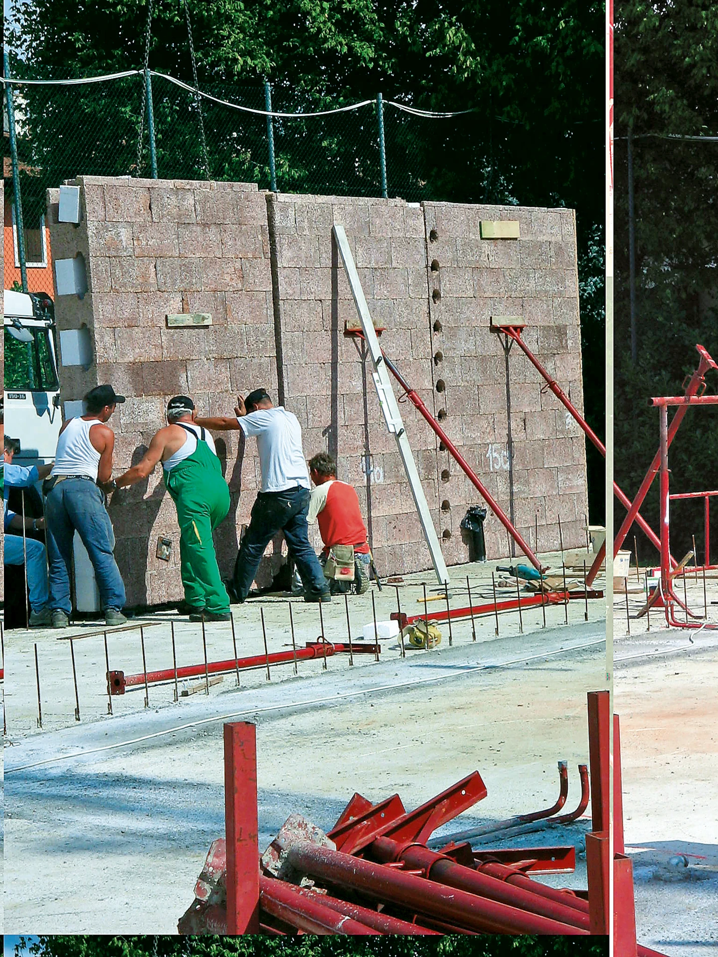 Bei geringer Modulhöhe werden die einzelnen Wände mit Hilfe von Keilen eingerichtet.