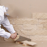 Choose the appropriate adhesive [see Accessories]. When installing apply the adhesive with a 6 - 8 mm toothed spatula using the buttering-floating technique fully to the substrate wall and to the back pages of stone pieces. Then, whether indoors or outdoors, with horizontal - easy sliding - movements, firmly press the stone pieces onto the façade wall.